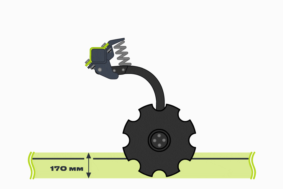 Стойка каждого диска индивидуально защищена при помощи резиновых эластомеров, что позволяет преодолевать препятствия высотой до 5 см и работать без остановок.
