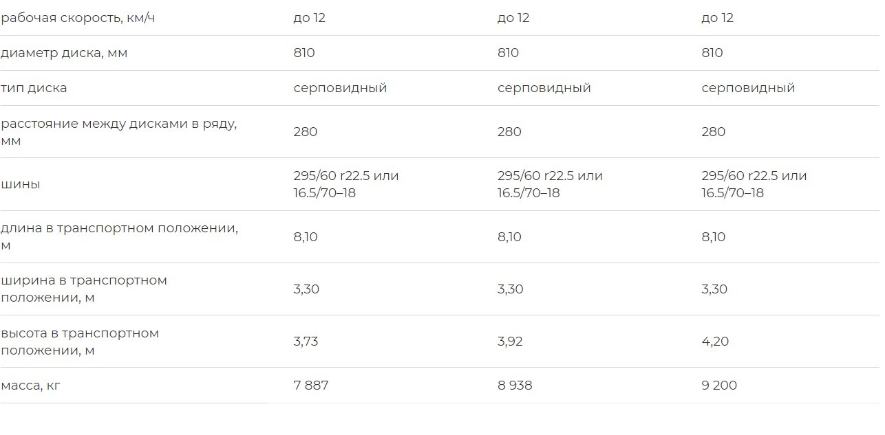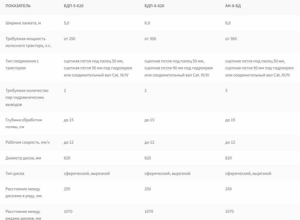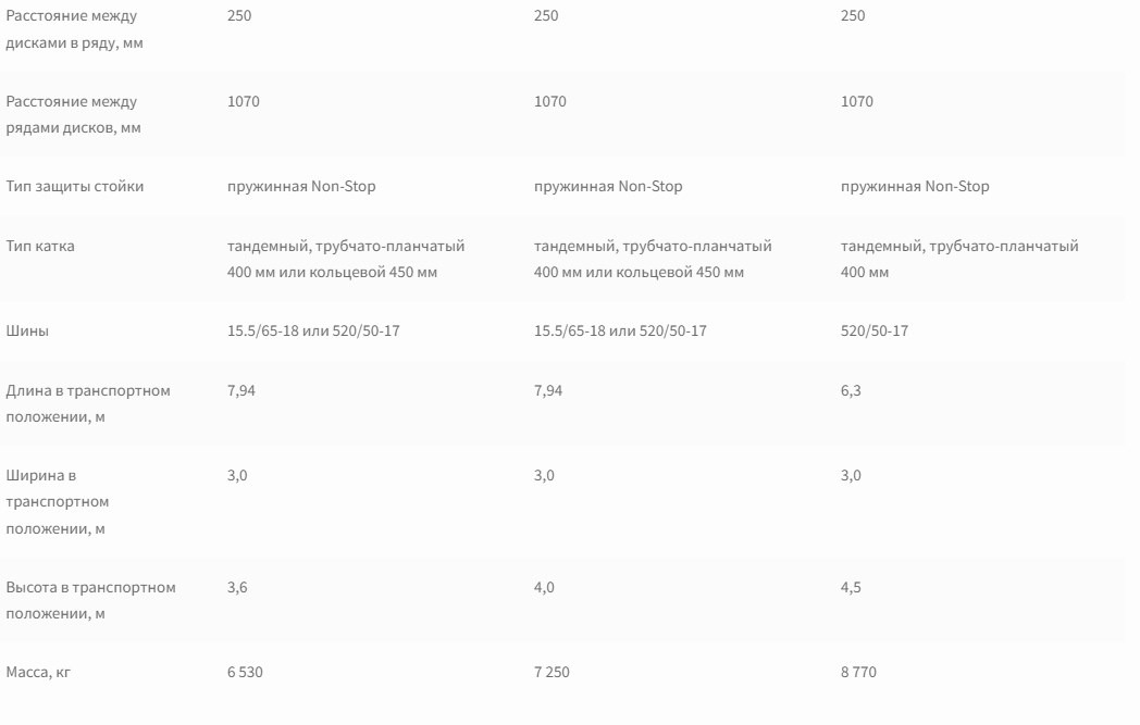 Расстояние между рядами дисков, мм 1070 1070 1070