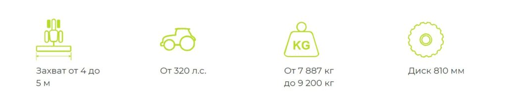 Мощнейший подвид дисков Ø810 мм и толщиной 10 мм способен перерубать кустарниковую растительность, молодые березы, клены. В то же время диски могут быть использованы для основной обработки почвы после уборки любых культур на глубину до 25 см