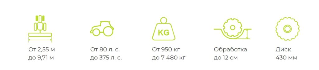 Назначение агрегата: Компактные дисковые бороны предназначены для предпосевной обработки почвы и заделки удобрений. Они создают ровное посевное ложе и формируют равномерный мульчирующий слой. За счет диаметра диска 430 мм эффективно проводят послеуборочную провокацию всходов падалицы и сорняков. Также применяются для обработки паровых полей.
