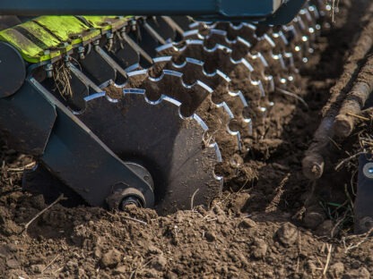Чем меньше диск, тем выше скорость его вращения и тем активнее он измельчает растительные остатки, образуя качественный мульчирующий слой на глубине до 3 см, который снижает влияние ветровой и водной эрозии, препятствует испарению влаги и улучшает проникновение влаги в почву.