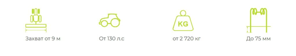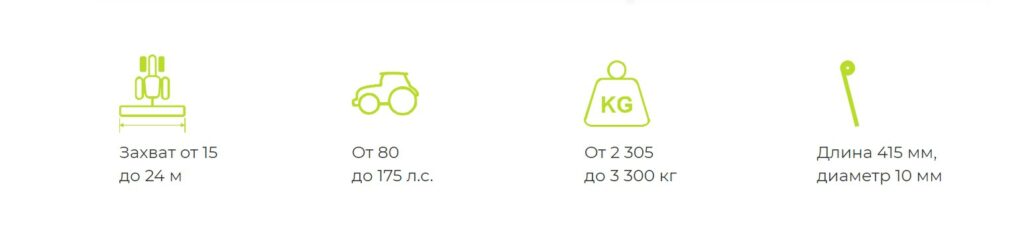 Ширина захвата, м | 8,98 | 10,85 | 14,46 | 18,07 | 21,69 | 25,3 |